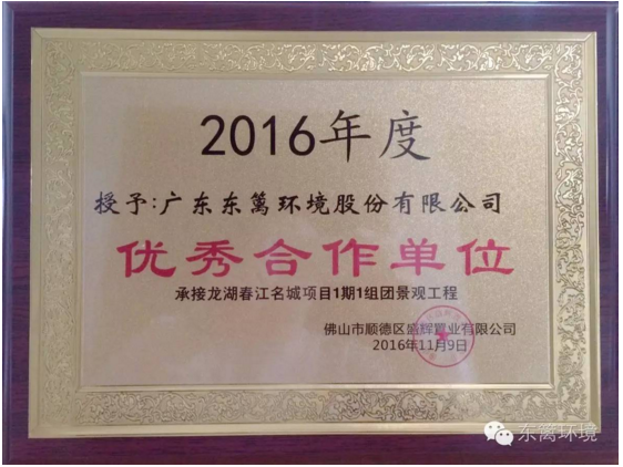 东篱环境又获奖啦!龙湖地产【2016年度优秀合作单位】
