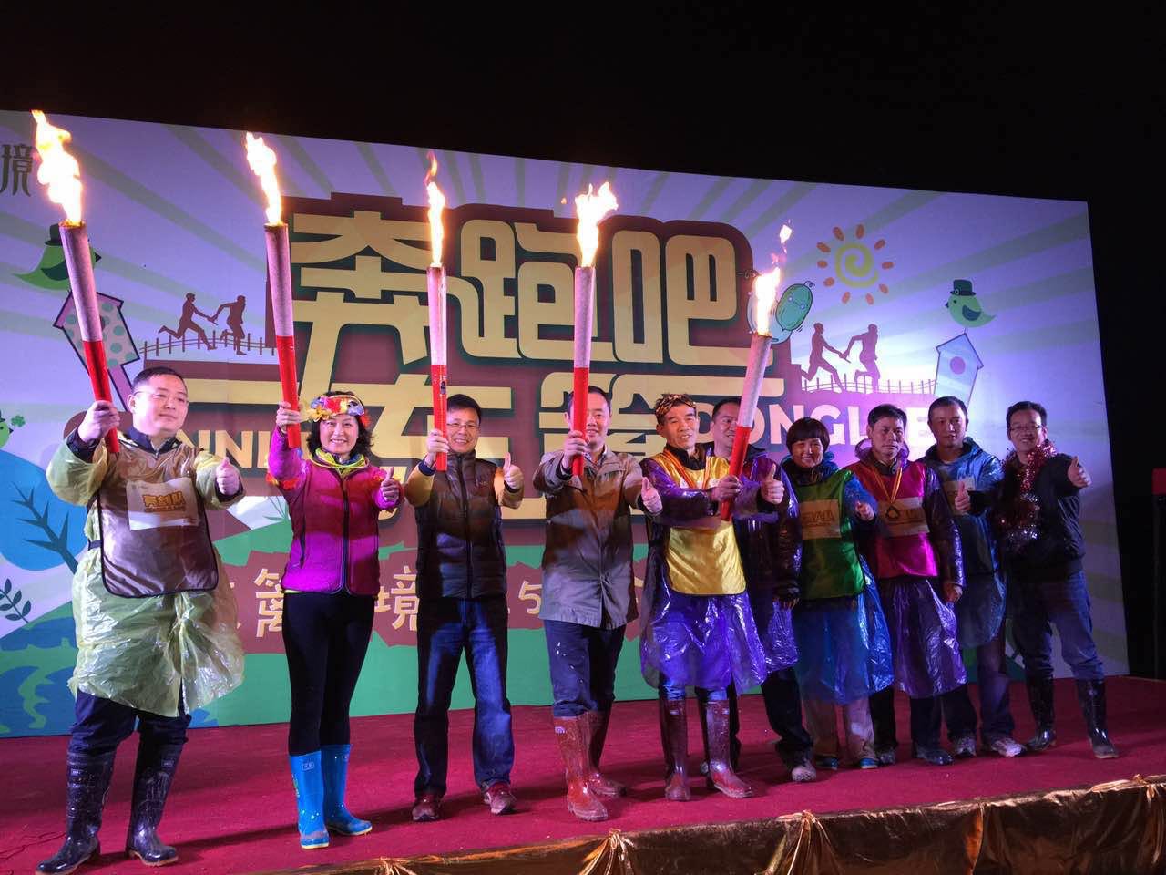 (东篱高管们火炬传递,点燃篝火)