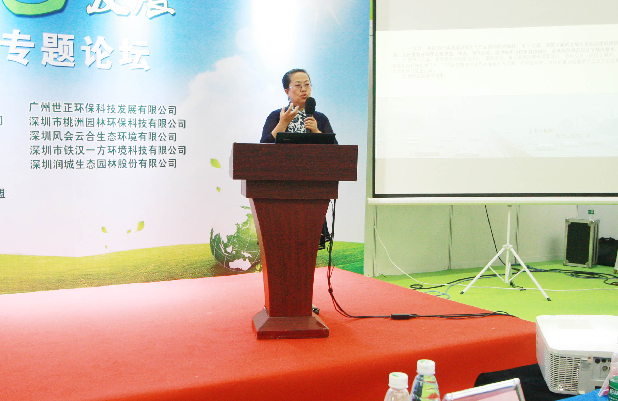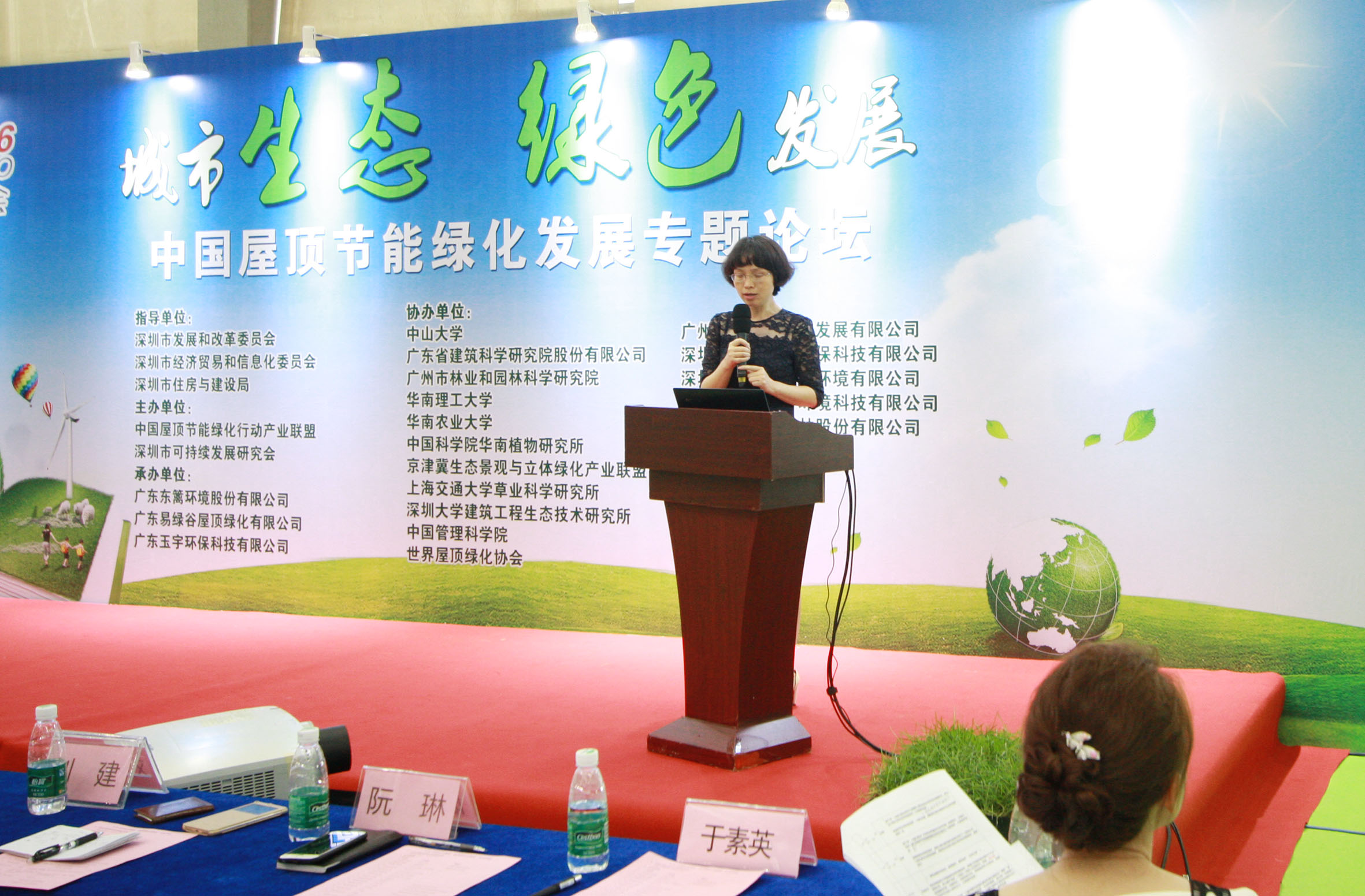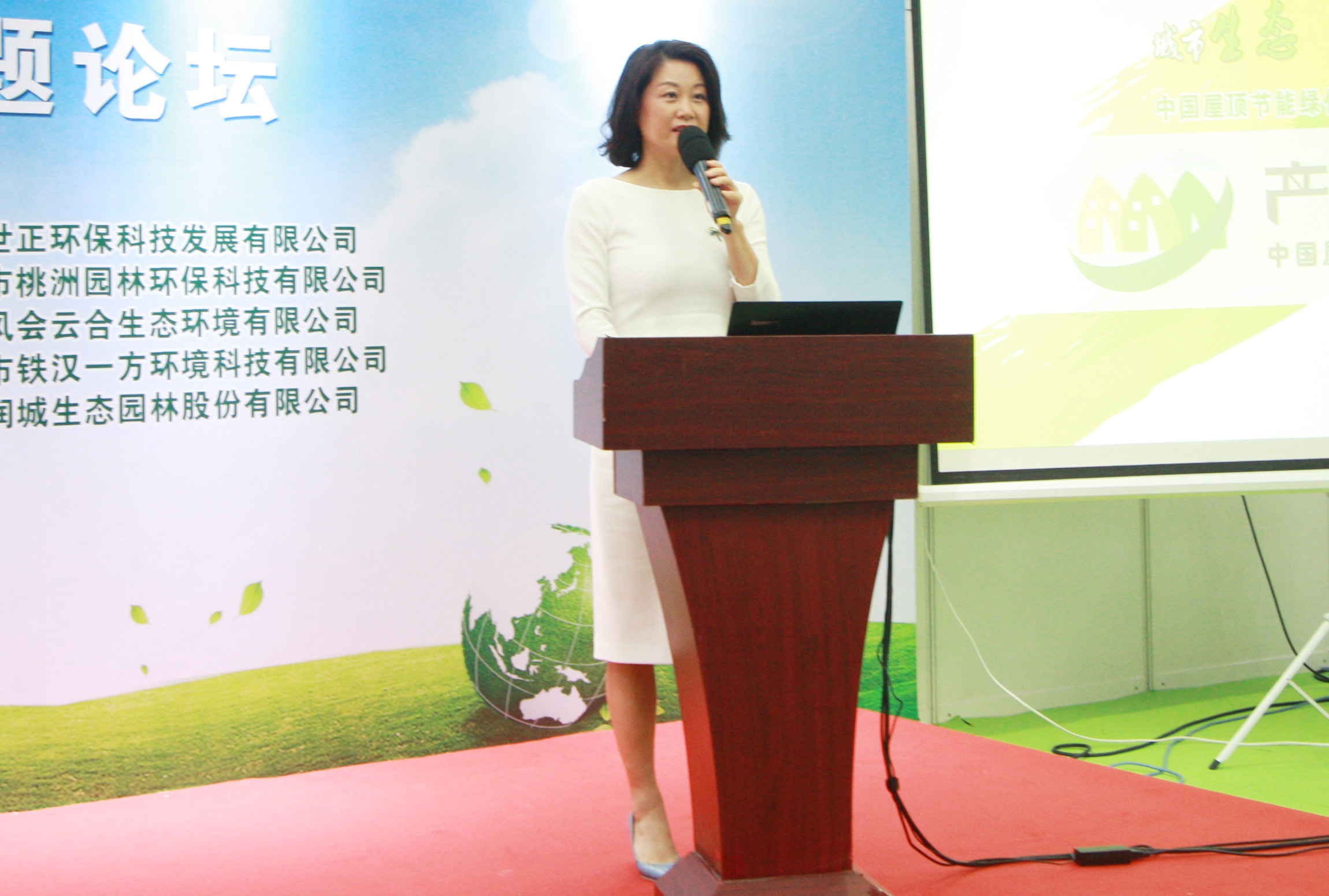 ▲ 于素英主任:作《建筑屋顶金矿的绿色化利用》专题演讲,强调在国内外的城市建筑中,屋顶绿化将带来不尽的效益。